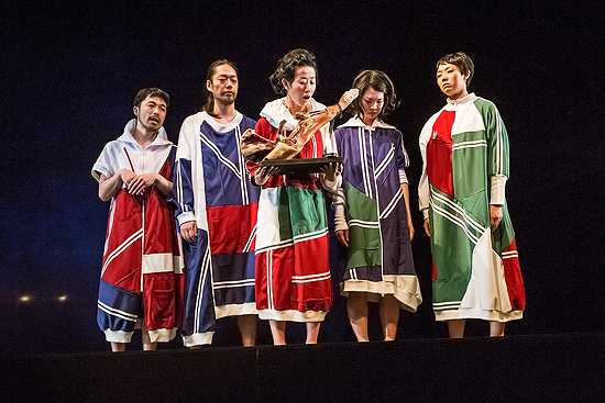 河野 エピソードの中で一番具体的に誰が何をしたということが分かるシーンですからね。もその後すぐに、百姓女の役から離れてアンサンブルの中に戻っていって「それ、違いますよ」ってケタケタ笑うのがおもしろいんです。常にこの話は何かを欺きながら話している感じもするんですよね、違いましたよーって。